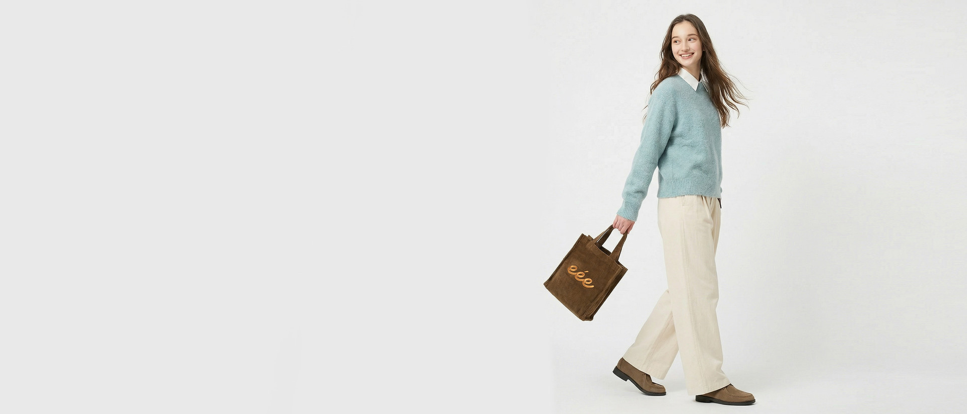 eée 코듀로이 a4사이즈 사각 에코백 브라운