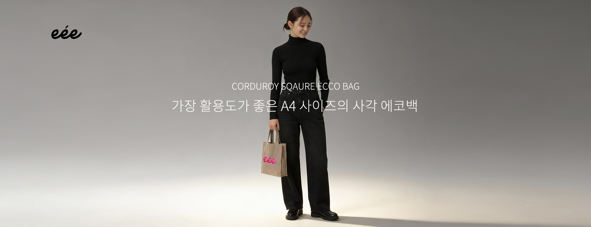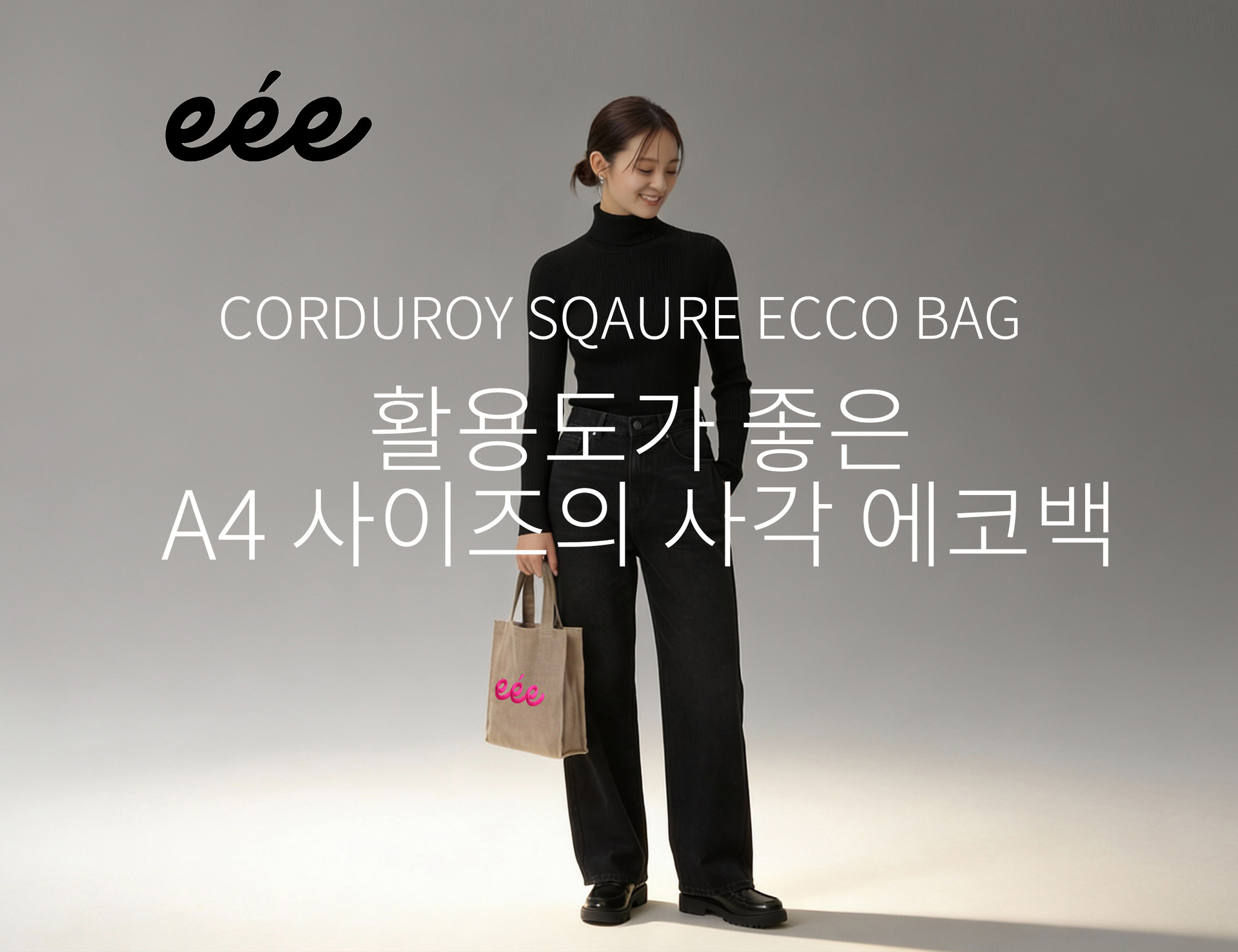eée 코듀로이 a4사이즈 사각 에코백 그레이